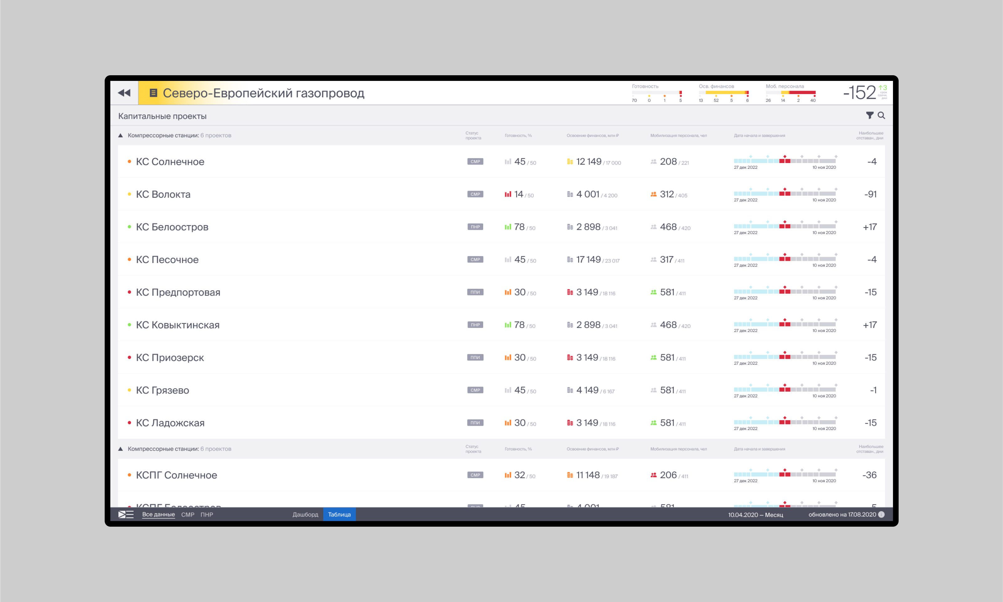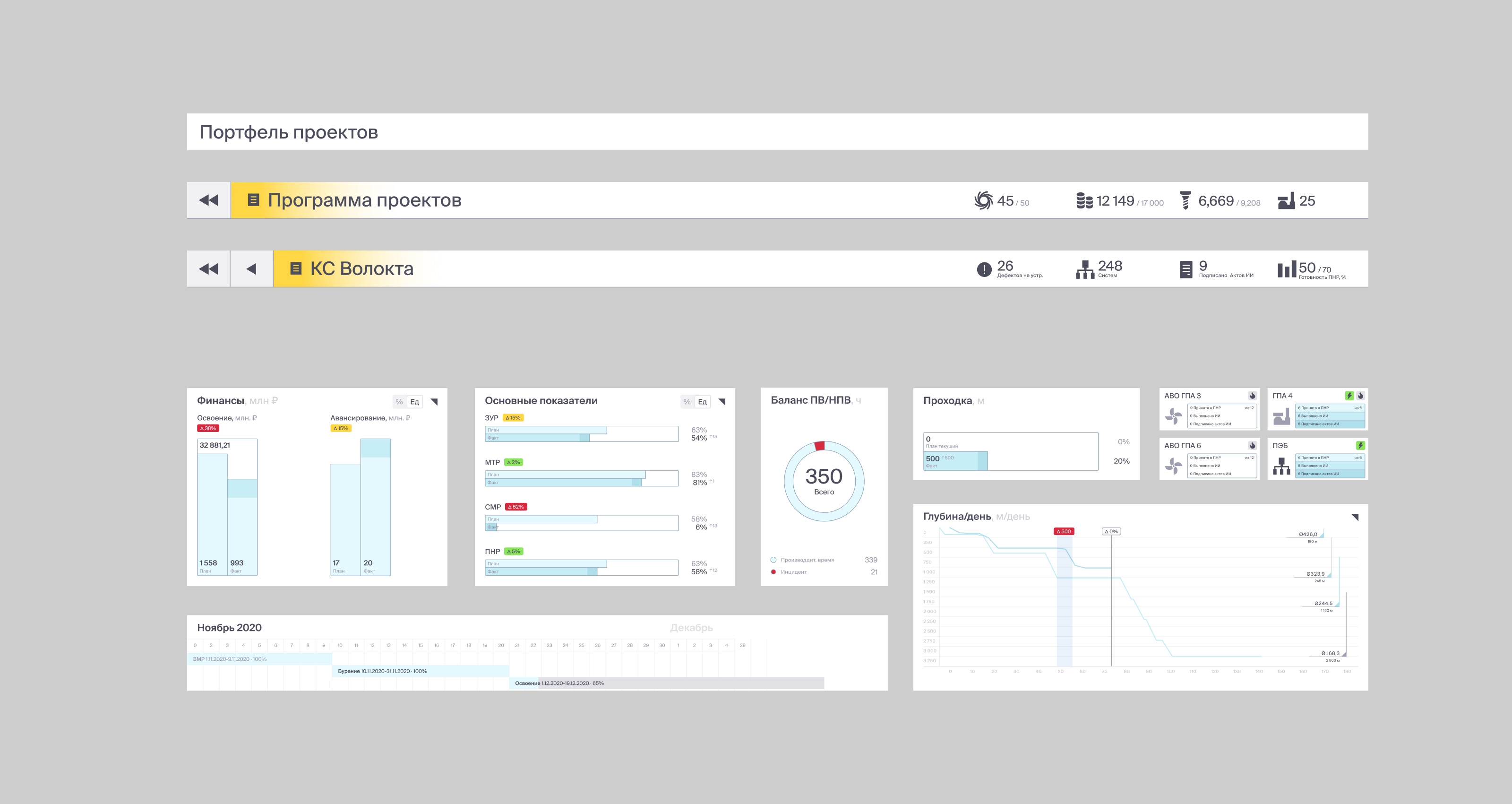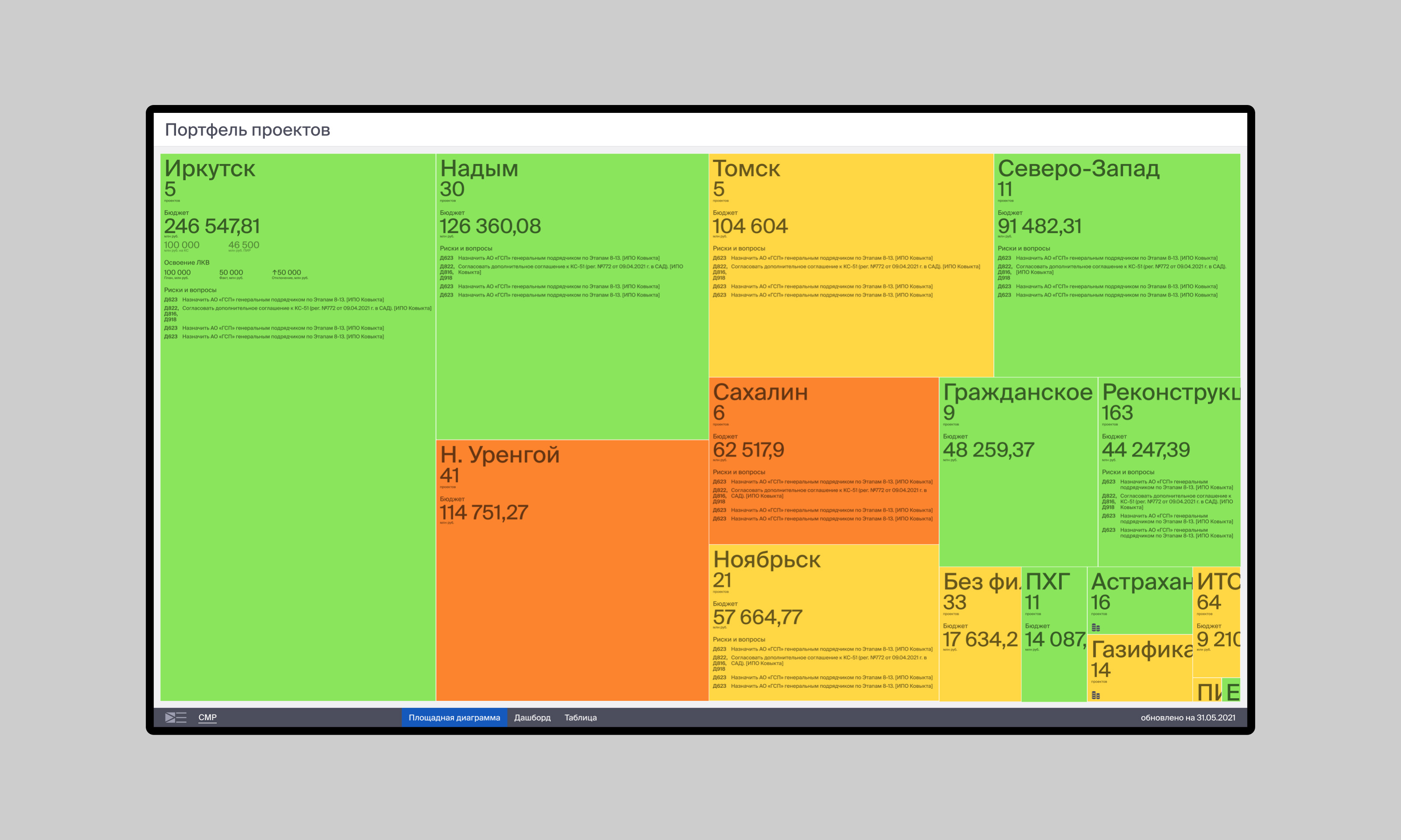 Второй уровень навигации — инвестиционный проект. Содержит более подробные данные. Визуализация как дашборд или список.