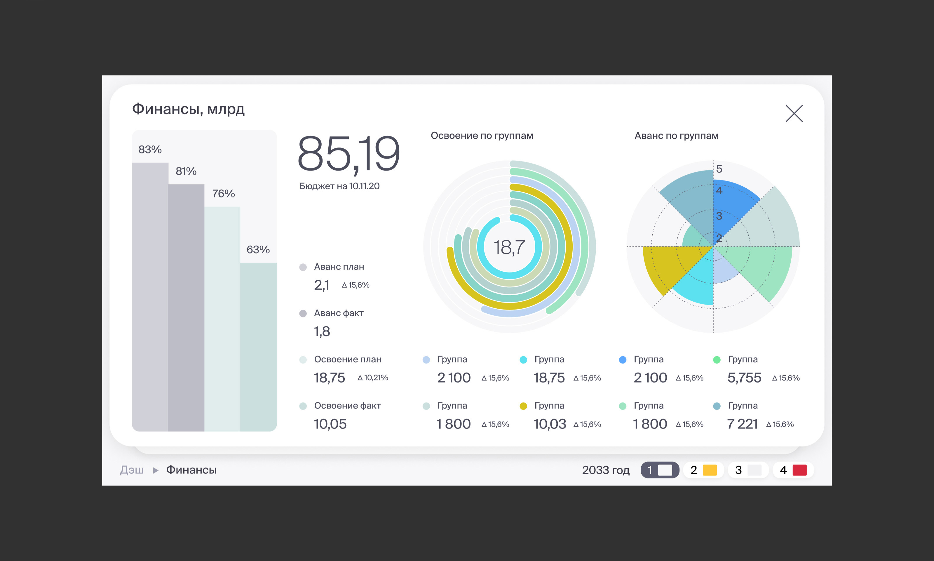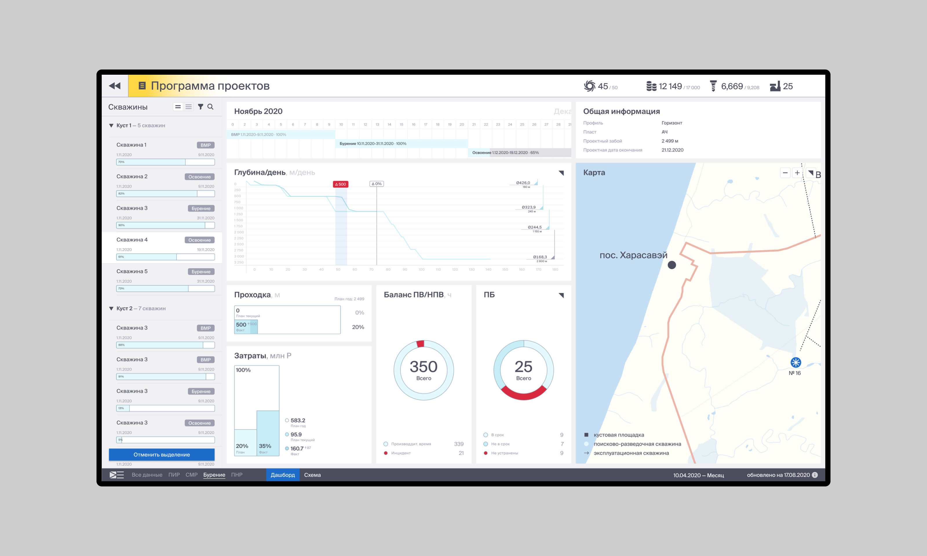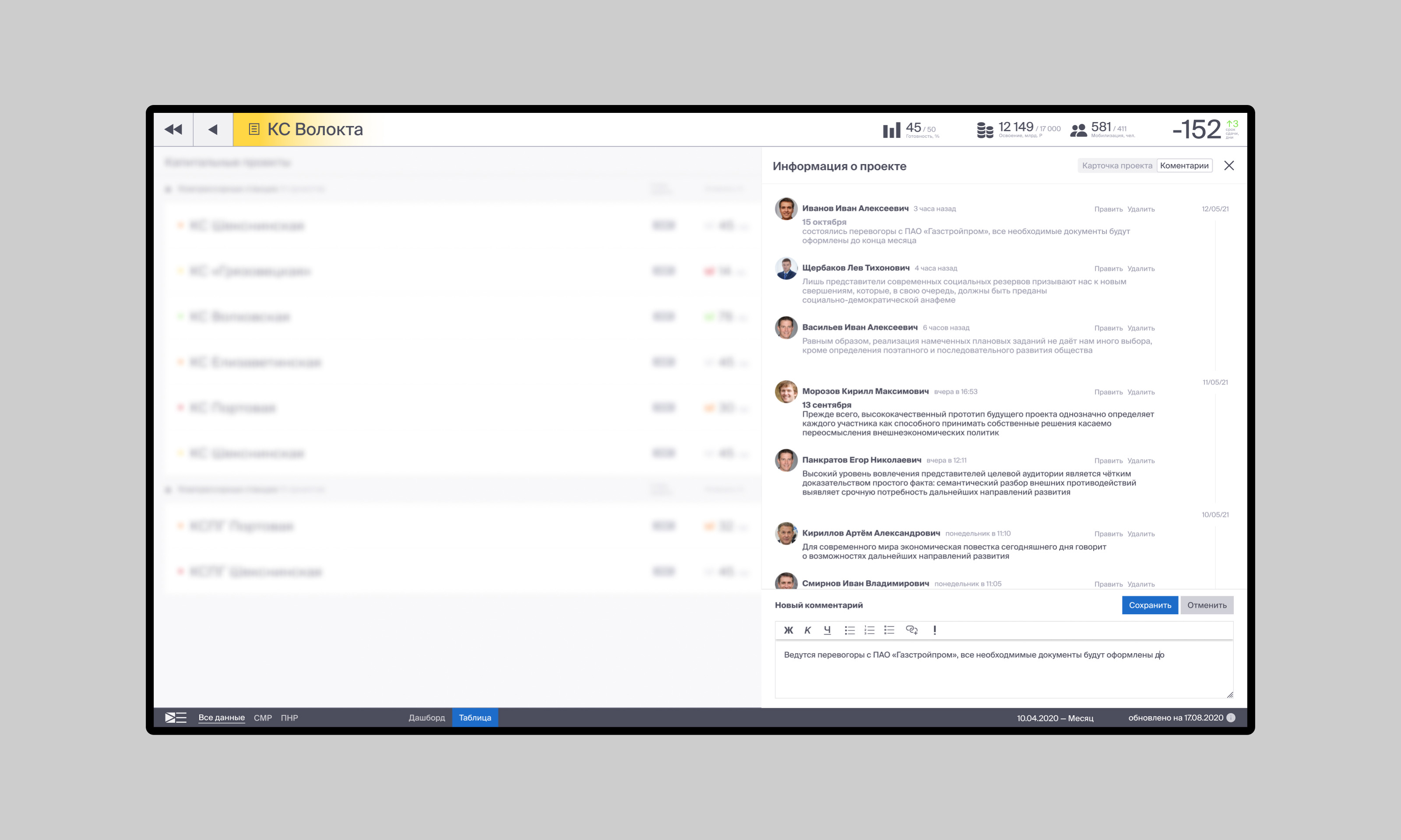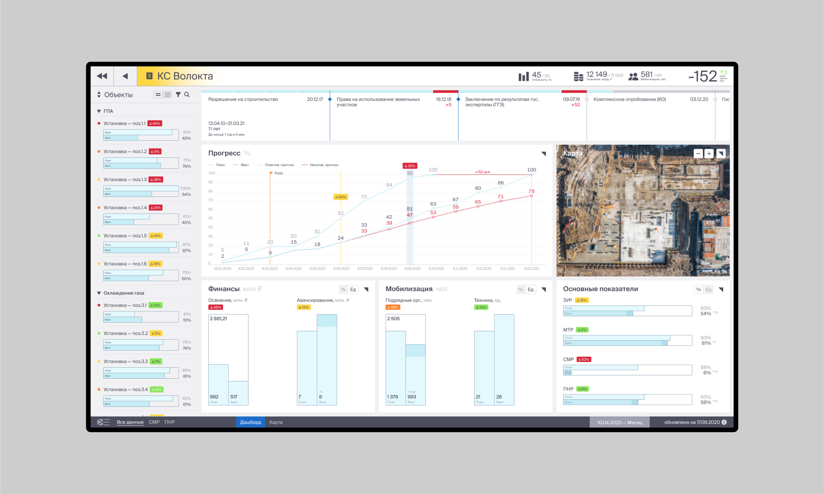 Второй уровень навигации — инвестиционный проект. Содержит более подробные данные. Визуализация как дашборд или список.