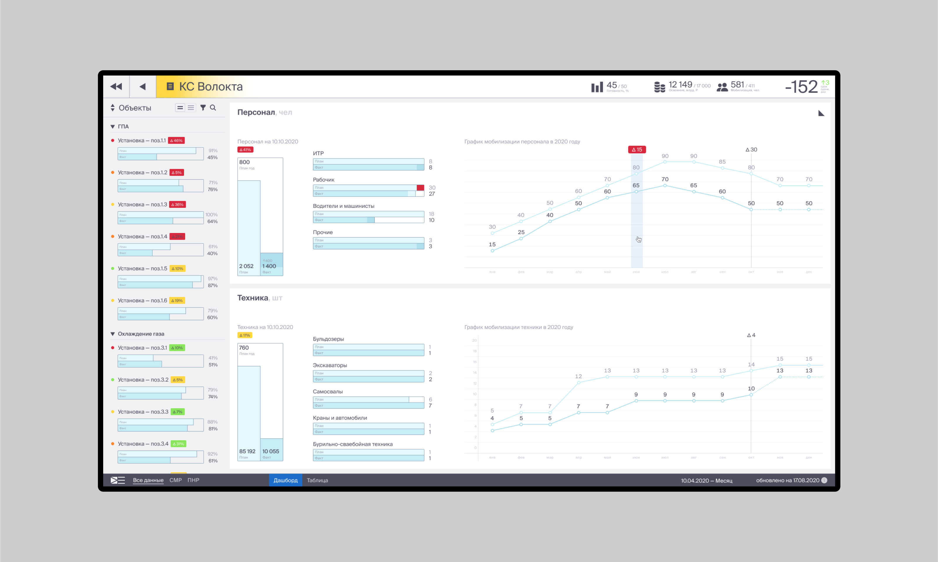 Третий уровень навигации — капитальный проект. Подробная информация об объекте. После этого уровня разбивка данных идёт уже по подрядчикам, за неё отвечают конкретные виджеты.