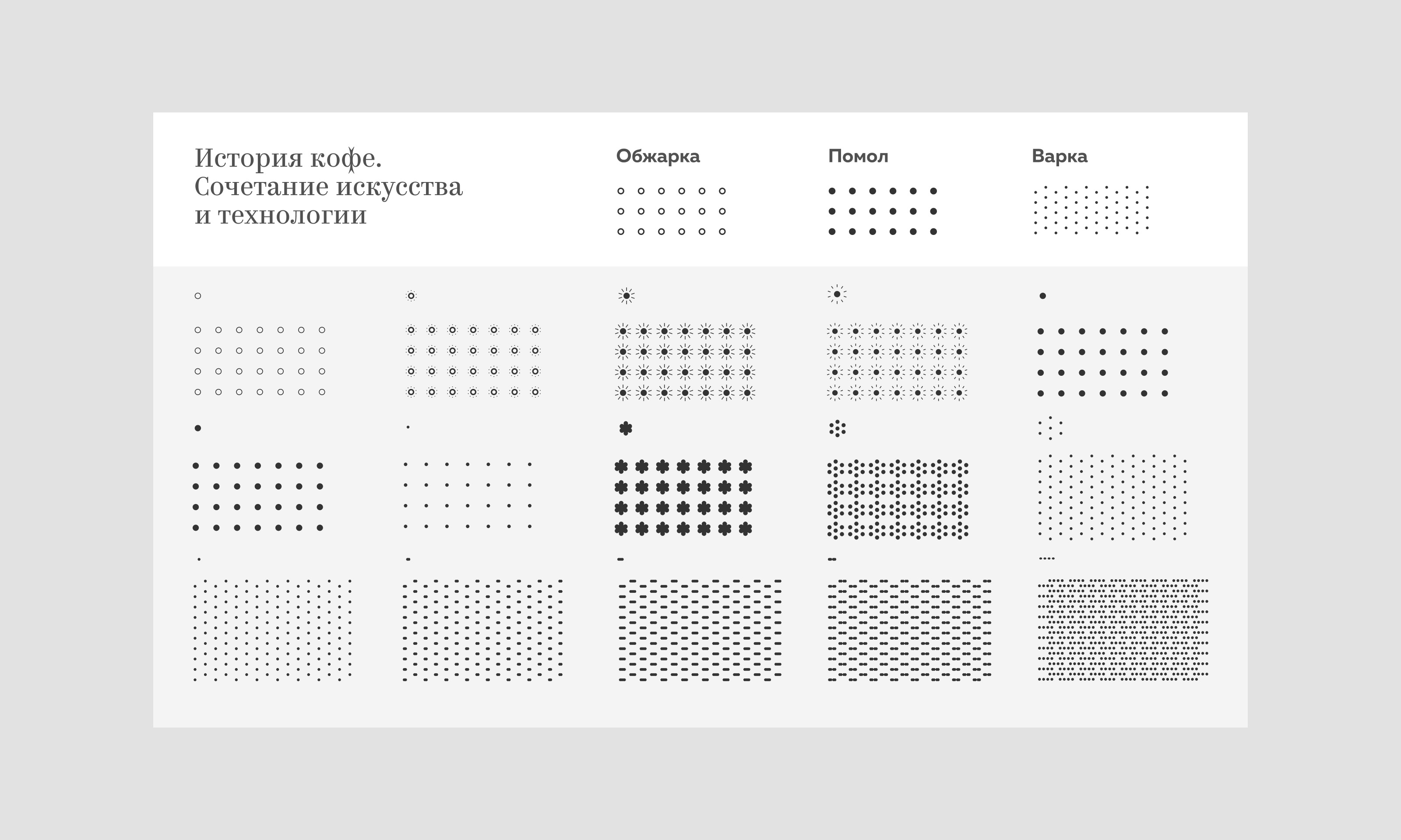 Основная концепция — совмещение искусства и технологии как метафора приготовления кофе. Сочетание чёрно-белой строгой линейной графики, гравюр и ярких цветных фотографий создают контраст и позволяют брендингу масштабироваться на все носители.