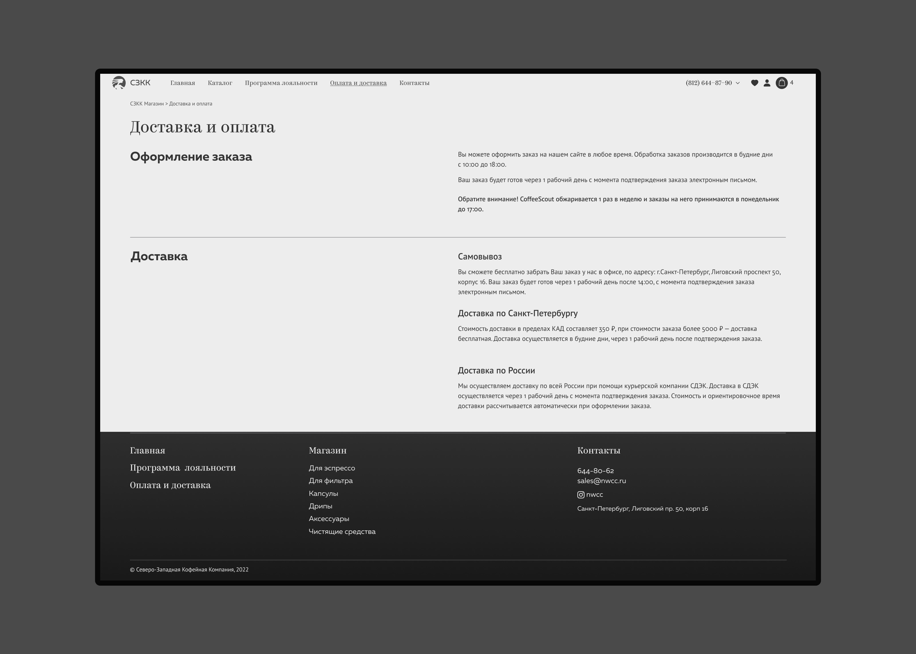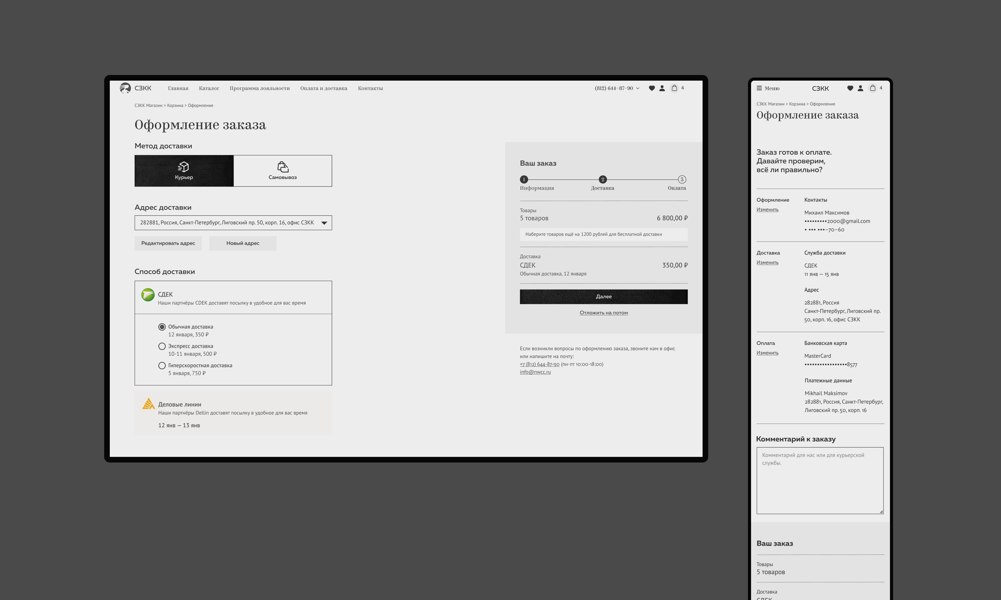 Процесс чекаута учитывает особенности работы компании.